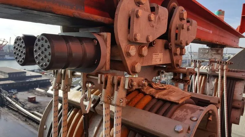 In der Hafentechnik stellen extreme Belastungen, große Fahrgeschwindigkeiten unter Last und kompakte Bauweisen besondere Anforderungen an die verwendeten Materialien. Die Heißgießelastomere von P+S aus, insbesondere Diepothan®, Diepocell® und Vulkocell®, sind speziell für diese Herausforderungen entwickelt. Dank ihrer hohen Verschleißfestigkeit und ausgezeichneten Dämpfungseigenschaften sind sie ideal für den Einsatz in Hafen- und Krananlagen.